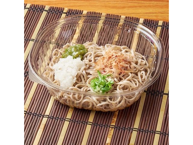 安曇野産わさび、大根おろし、かつお節、ねぎをトッピングしたぶっかけそばです。わさびの特有の辛みと風味が味わいのアクセントです。 ※山梨県、長野県、静岡県(東部)での取り扱いです。