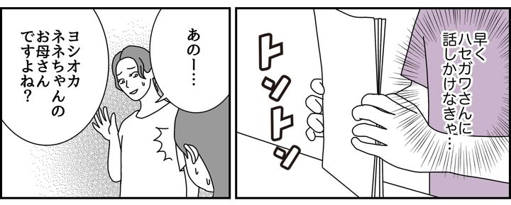 私はアンナ。夫に娘のネネが盗撮された話をしたら、やはり同じように驚きを隠せない様子でした。私はハセガワさんとほぼ話したことがないため、どうしてネネの写真を勝手に撮るのかまったくわかりません。ハセガワさんの行為を不思議に思うばかりの私でしたが、「ネネの写真を悪用される危険性」について夫から指摘されてゾッとしてしまいました……。来週はちょうど保護者会があるので、もしハセガワさんが来たらきちんと話をしようと思っています。