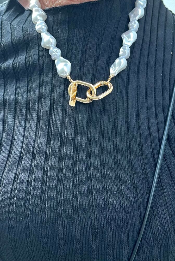 素敵なあの人の付録のネックレス。「愛用しています!バロックパールの大ぶり感と、ゴールドの金具部分を前に持ってきても印象が変わるところがお気に入り。顔周りを華やかにしたいときにぴったりです」