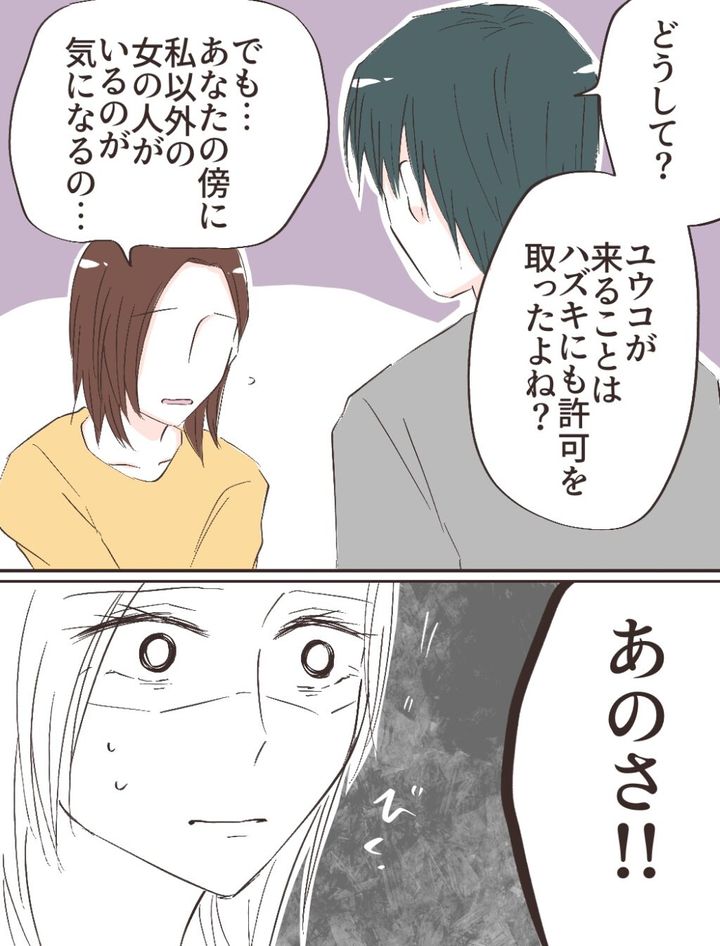 「ハズキができないっていうからお金を払って家事代行やユウコに住み込みで来てもらってるんだよ!わかる?全部ハズキのことを思ってやってるのに・・女の人がいるのが気になるってなんだよそれ?!」険しい顔でリヒトさんに責め立てられ、私は怖くなって「ご・・ごめんなさい。でも・・」と言うのがやっとでした。