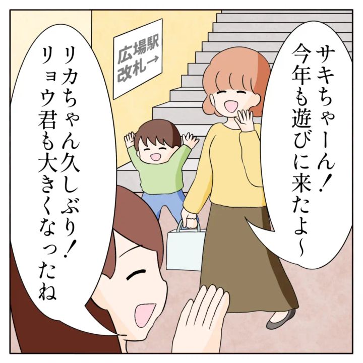 シュウトと私は、実家を出てからもお互いに連絡を取り合っていて、毎年1回、家族で田舎の私達の家に遊びに来てくれていました。「サキちゃーん!今年も遊びに来たよ」と、もう走り回れるようになったリョウくんをつれてリカちゃんは来てくれました。