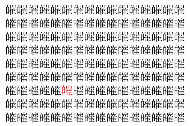 2. 【脳トレ】「皠」の中に紛れて1つ違う文字がある!?あなたは何秒で探し出せるかな??【違う文字を探せ!】