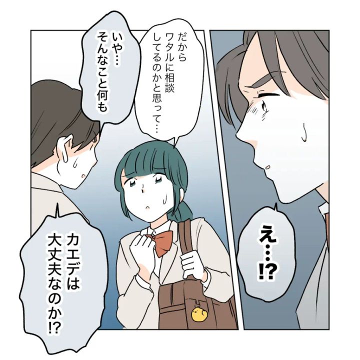 カエデに届く手紙の内容が『ワタルに近づくな』だと知って、ワタルは絶句しました。「だからワタルに相談しているのかと思って」と心配そうに言う私に「いや、そんなこと何も。カエデは大丈夫なのか!?」とワタルはかなり動揺しているようでした。