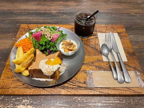 筆者は「シナモン&チャイクリーム」(プレートセット1,250円、トーストのみ800円)のプレートセットを注文。このボリューム感と豪華さ! ちなみにドリンクはセットについていません。