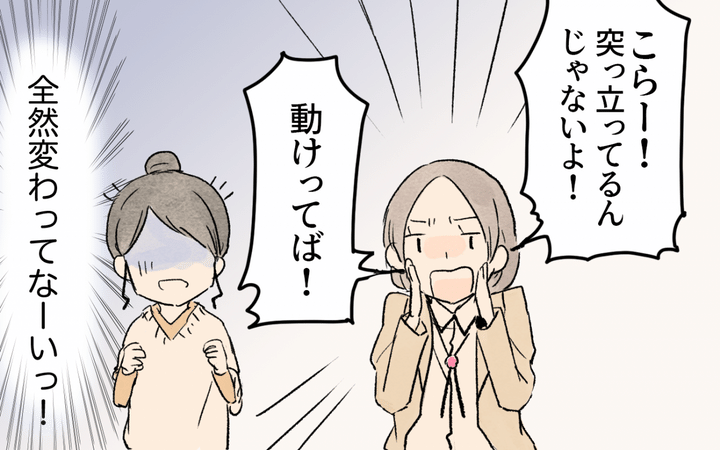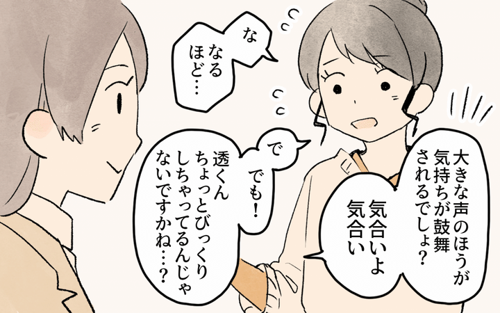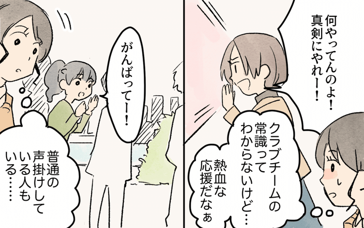まわりのママさんは慣れているようですが、あまりの応援の勢いに驚く主人公。