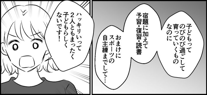 「ハッキリ言って、お義姉さんちは2人ともまったく子どもらしくないです」と、なぜか突然戦闘態勢で向かってきたユリさんに私は驚きました。「勉強ばかりさせて、今遊ばせないと大人になってから子どものころ遊べなかった反動がきて、将来とんでもないことになりますよ?」とまで言われました。