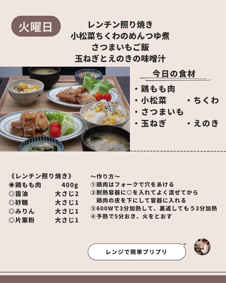 3. 週1回のまとめ買いで作る1週間ごはん!@copi__gohanさんの秋の献立