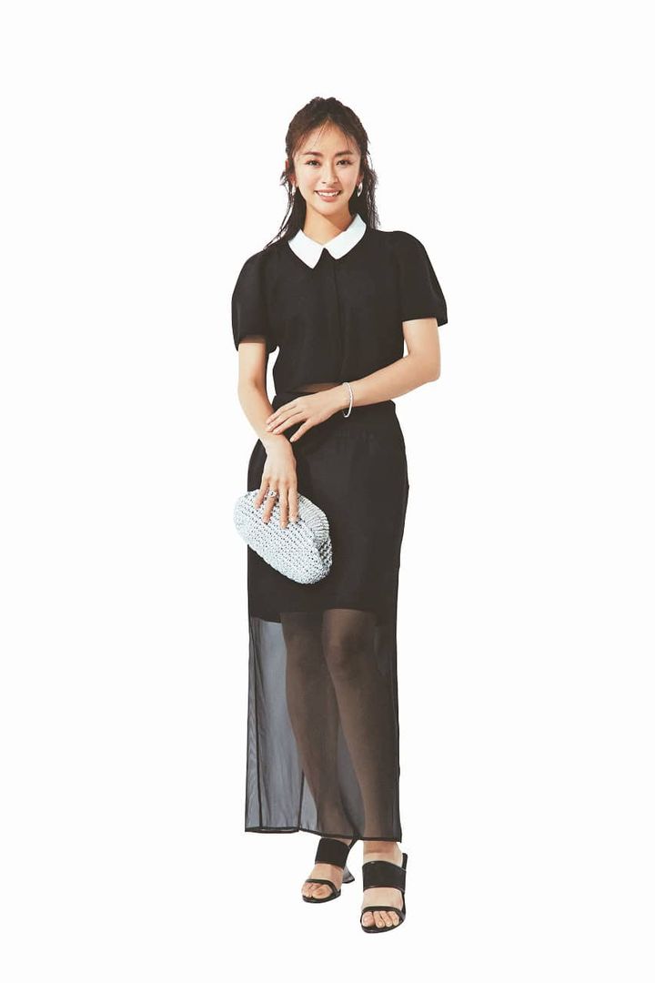 カーディガン¥16,940(FRAY I.D)スカート¥20,900(ヴェルソー/ジオン商事)バッグ¥55,000(ノアム ハザン/ティースクエア プレスルーム)サンダル¥10,900(チャールズ&キース/チャールズ&キース ジャパン)ピアス¥30,800リング¥49,500(ともにウノアエレシルバーコレクション/ウノアエレ ジャパン)ブレスレット¥31,900(アビステ)
