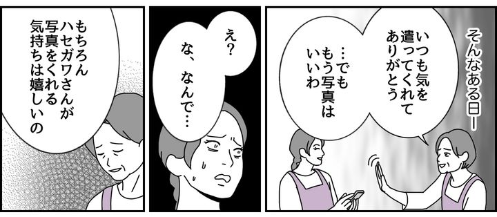 さてそんなある日、いつものように写真を渡そうとすると、ヨシオカさんから拒否されてしまいました。