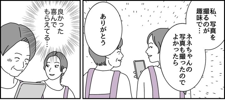 憧れているパート先のベテラン・ヨシオカさんにお礼がしたいと考えた私。わが子とお孫さんが同じクラスだとわかったので、ネネちゃんの写真を渡すことにしました。