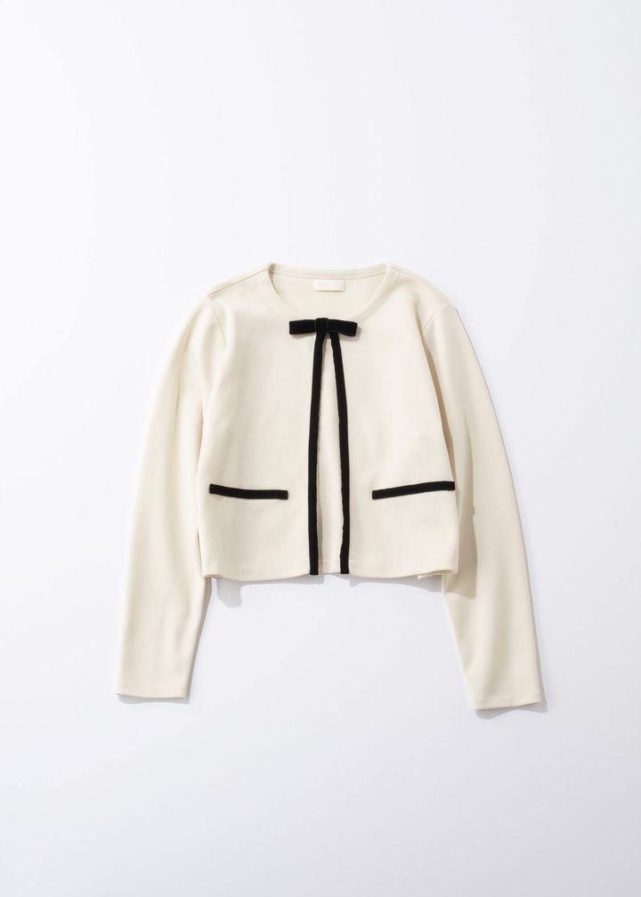 品のある佇まいで魅せる、大人のための洗練カーディガン。ミラノリブの程よいハリが生む立体感に、前立てとポケット口のベルベットテープがシックなアクセントに。ライトジャケット感覚で羽織れ、取り外し可能なリボンで表情のアレンジも自在です。