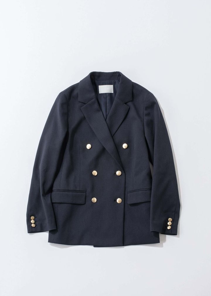 クラシカルなネイビーが知的なムードを引き立て、程よくシェイプされたラインが女性らしさをさりげなく薫らせる一枚。オフィスシーンはもちろん、デニムに合わせたカジュアルダウンもサマになる万能ジャケット。フェミニンなワンピースとの相性も抜群です。