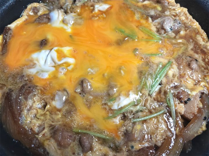親子丼のレシピではよく卵を2回に分けて入れるのを見ますが、このレシピのように3回に分けるのはわたしの記憶ではたぶん初めてのことです。
