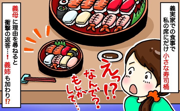 義実家で私の席にだけ“小さな寿司桶”!義母に尋ねると「あなたは家族じゃ…」会話を聞いた義姉が!?