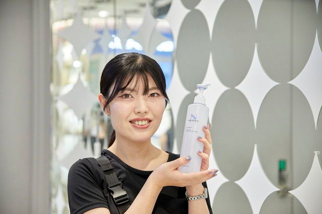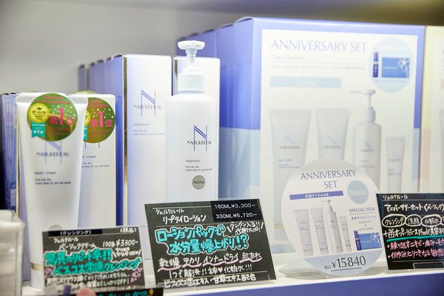 山下さんは、こだわりのスキンケアアイテムを伝授してくれます。「私がおすすめしたいのはこれです!」と真っ先に商品ディスプレイへと向かい、教えてくれたのはシェルクルールのナチュレポウ・シリーズ「リプライローション」でした。