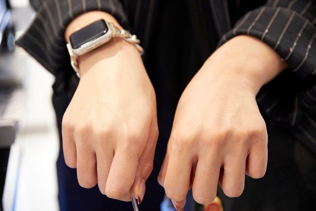 写真左の手の甲を「ライブリースキン ウェアⅡ」でメイク。ツヤ感が美しいだけでなく、カバー力や密着感にも大満足!