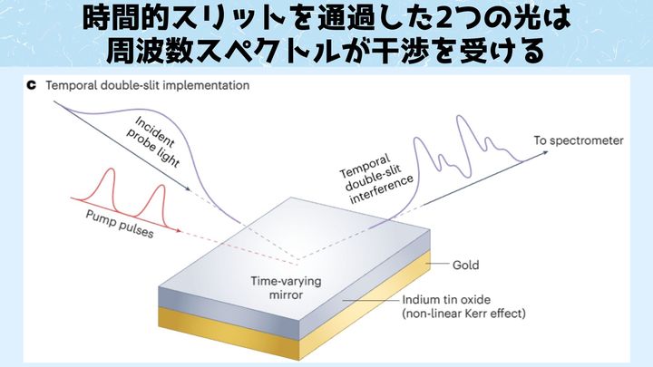 同じ場所であっても異なるタイミングで素早く2回スリットを開閉できれば、空間ではなく時間的に接近した2本のスリット「時間的二重スリット」を作ることが可能になるのです。