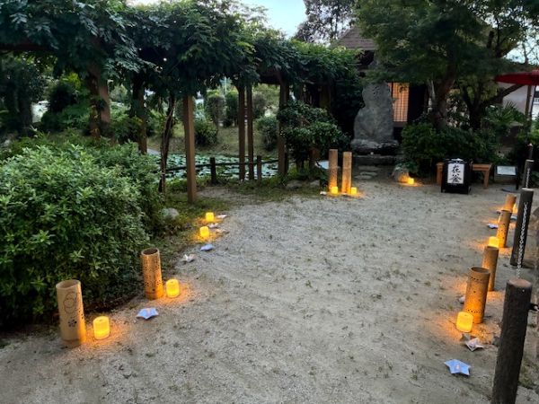 「元々ここ半禅居では、月に一回、第一日曜日に茶会が開かれています。菅原道真公とも縁が深いこの歴史背景のある場所で、光のアートと合わせてその一瞬を楽しんで頂きたいと思い、今回「夜の茶会」を開催することになりました。」