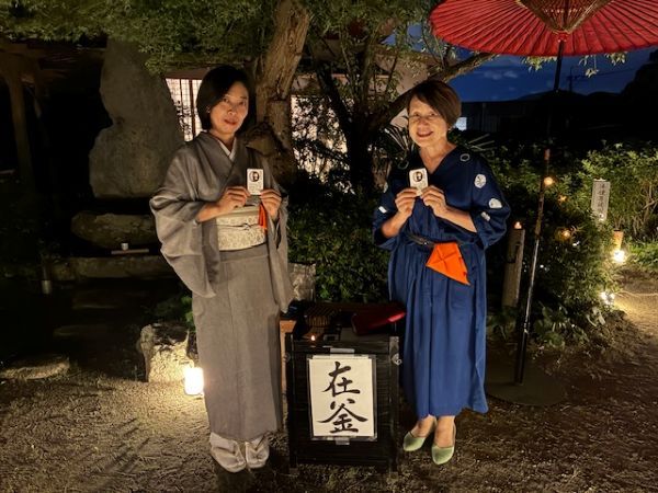 「夜の茶会」は、帳が落ち始め、賑やかだった虫たちの声が段々と鳴りを潜め始めた頃、和やかな雰囲気の下スタートしました。