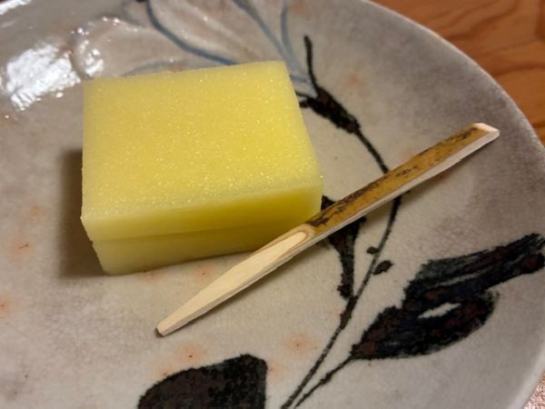 粟(アワ)を使った程よい甘さのあわかんは、鮮やかな黄色を帯びていて、目でも楽しめる茶菓子でした。