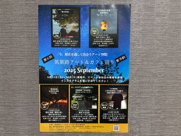 「筑紫路アート&カフェ巡り」では、9月21日に開催された「夜の茶会」のほか、30日(火)までの期間中、太宰府~筑紫野の歴史を肌で感じられるイベントが開催予定です。