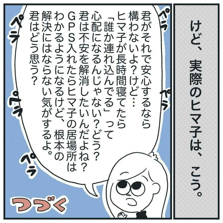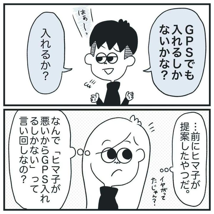彼氏は、ヒマ子さんの話を聞いていたのでしょうか?ヒマ子さんだって、あんなに言われてしまったら、カチンときます。そしてつい、勢いでGPSを入れる羽目に…。