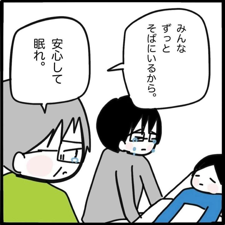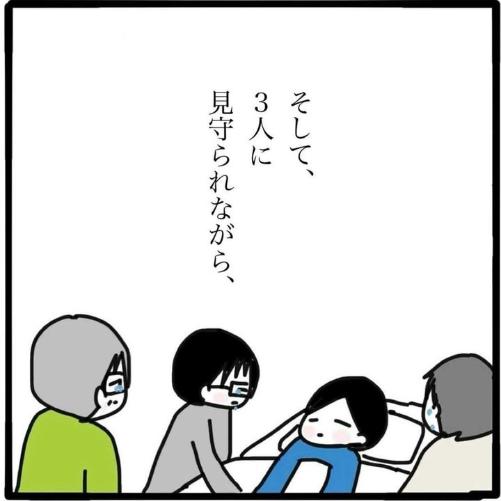 このお話は、作者・つきママ(@tsukimama34)さんが、フォロワーさんの実体験をもとに描いた作品です。大切な人との別れは、それまでどんなに時間を尽くして過ごしてきてもやはり寂しく、悲しいものですよね。ただ、闘病など、当事者のこれまでの頑張りを知っていると、心から「お疲れ様」「よく頑張ったね」という言葉が出てくるものなのかもしれません。