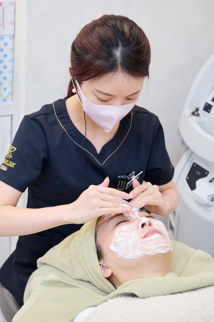 こちらのクリニックでは、看護師の方がクレンジングと洗顔をしてくれます。洗顔のコツを学びながら、普段の生活や肌の悩みなどをお話できるのも助かります。