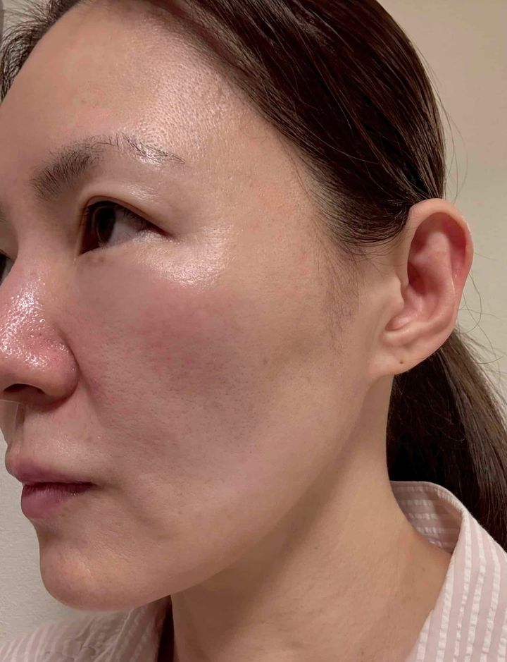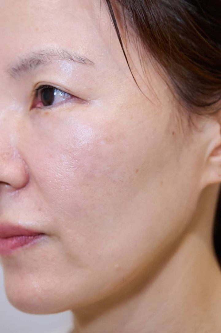 「レーザーを当てた部分はすっかり綺麗になりました。内服と保湿の甲斐あって、肌のトーンもアップした気がします」