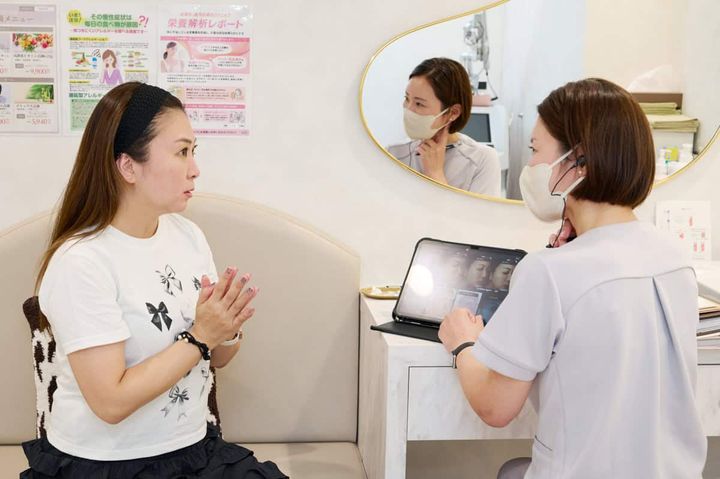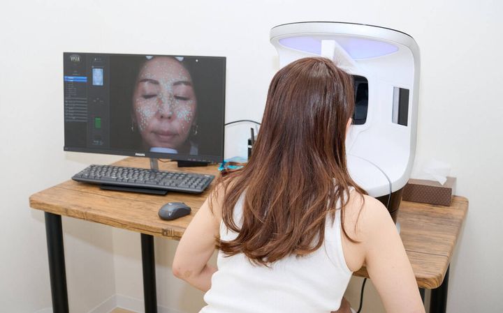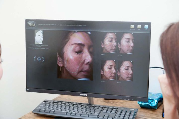 見たいような見たくないような診断結果を見せてもらいながら、今の肌状態をチェック。