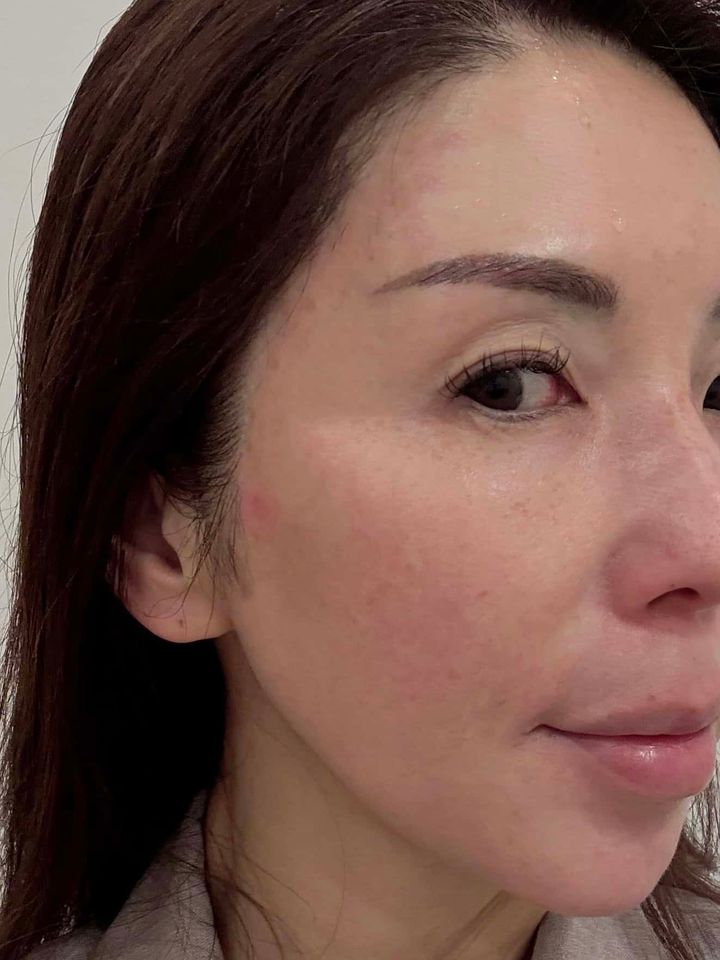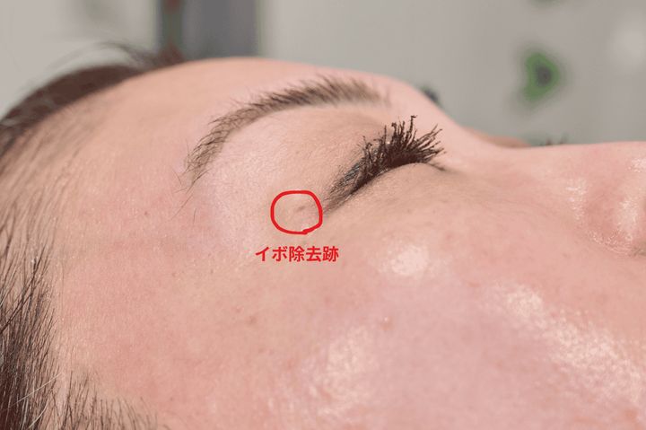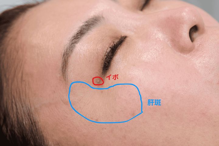 茶色の点は肝斑、目の横の膨らみはイボでした