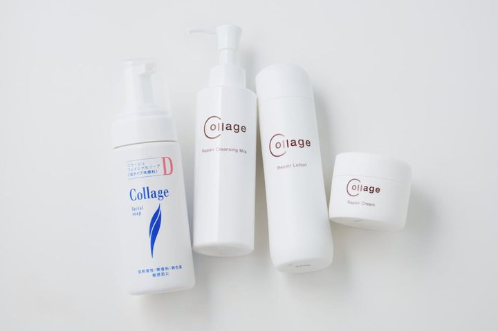 左からDフェイシャルソープ 150ml¥1650、リペアクレンジングミルク 150g¥2640、リペアローションしっとり 150ml¥2,970、リペアクリーム 40g ¥3960(すべてコラージュ/持田ヘルスケア)