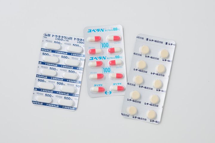 左からトラネキサム酸、ユベラVit E(ビタミンE)、シナール(ビタミンC)