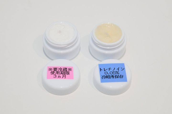ハイドロキノンとトレチノインクリーム、ビタミンC、B、Eを内服することに。肝斑には、肌のバリア機能を高める保湿も重要とのことで、保湿剤も処方してもらいました。
