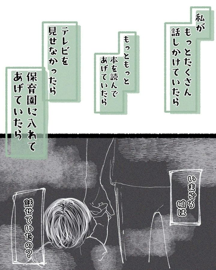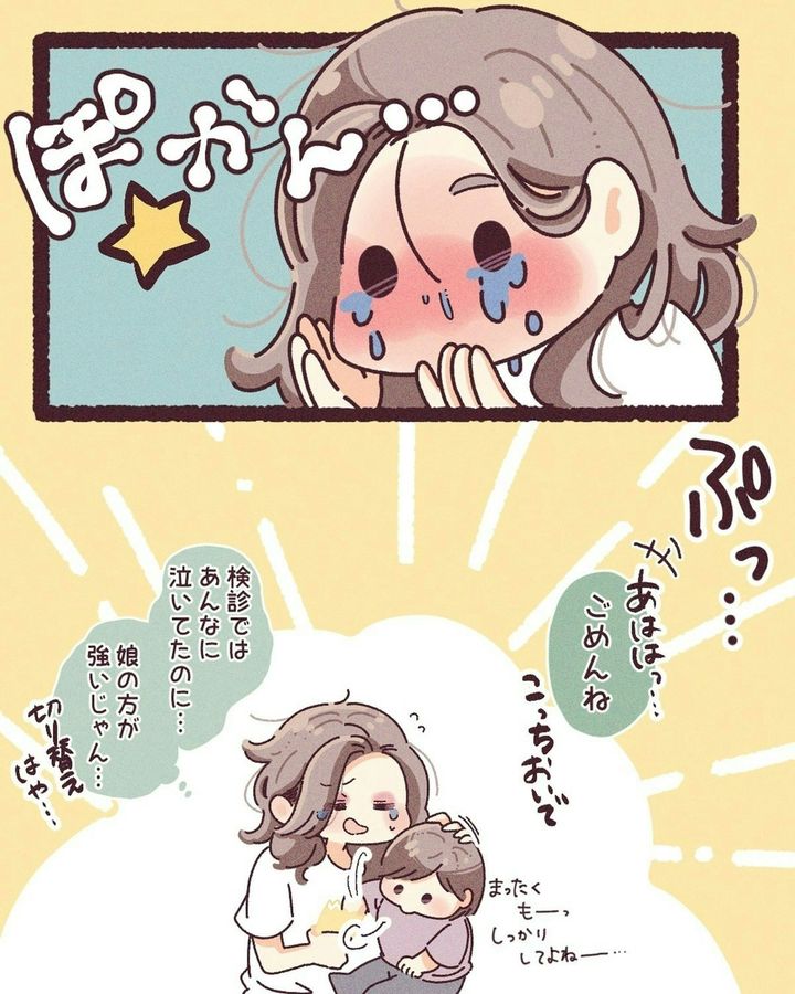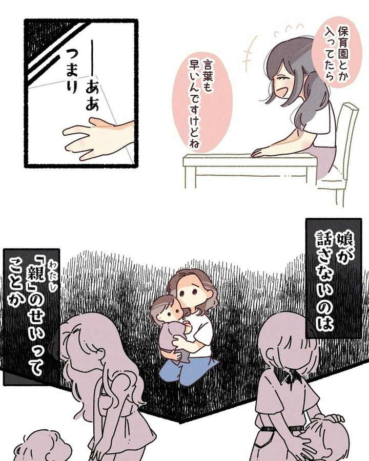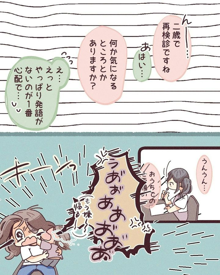 本作では、娘の1歳半健診で、母の心が大きく揺れ動いた様子が描かれています。「自分のせい」と、自分を責めているシーンは、心が痛くなります。