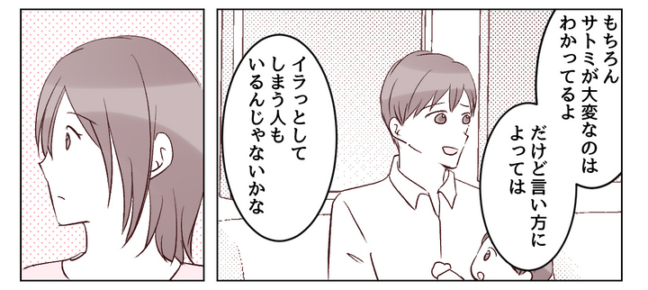 子育て支援センターで今日起きた出来事を話すと、夫は穏やかに話を聞いてくれました。しかし夫は、私の「他のママの倍以上大変」という発言が、相手には違う意味で聞こえたのではないかと指摘してきたのです。たしかにあのママには「大変さを自慢している」と受け取られてしまっていました。