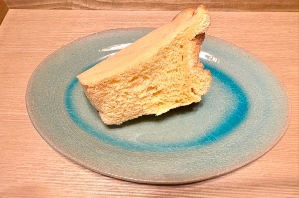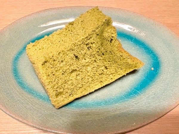 京都産の宇治抹茶を使用した「お抹茶のシフォン」(420円) 店主さんから「日に当たると色が変わるので、気を付けてください」と言われたので、大事に持ち帰ってきました。 繊細な抹茶の香りがふくよかで、私の中で和を一番に感じたシフォンケーキです。