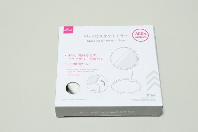 今回紹介するのは、こちらの『トレー付スタンドミラー』という商品。価格は330円(税込)です。