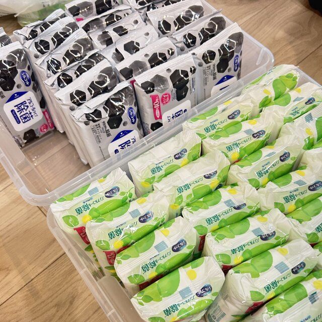 ウエットティッシュを1パックだけ持つ人、3パックをストックする人、1ケース12パックでストックする人など様々ですが、1つのストック品が12倍あると、たいてい他の洗剤や消耗品も同じようストックが多く、家中いろいろな収納がストックだけで埋め尽くされてしまっています。