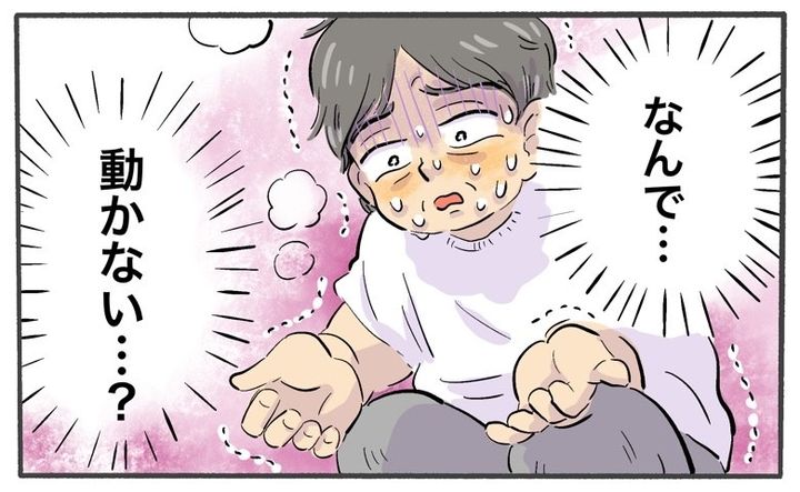 タオルでこまめに拭きながら水筒のミネラルウォーターを飲んでいたのですが、小休憩のときにはめまいがして、自分でもこれはまずいと感じ、木陰のベンチに腰を下ろしました。すると徐々に手足がしびれ、手の指が硬直して動かせなくなりました。めまいとしびれで座るのも困難になり、横になって治まるのを待ちましたが、起き上がることもできなくなりました。