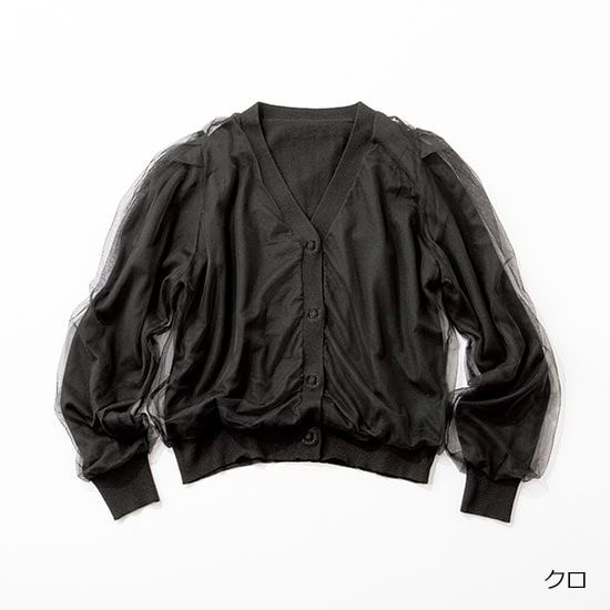 単なるベーシックではなく華やぎと品のよさが纏える大人カーデ。初秋には羽織りとして、本格的な秋が来たら1枚で活躍が期待できるカーディガンにチュールを被せてドレスアップ。
