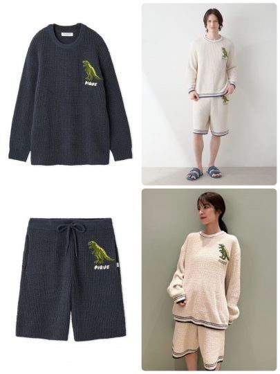 適度な厚みがあるワッフル素材に、キュートなダイナソーデザインが特徴。