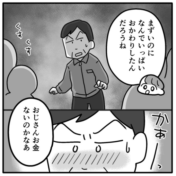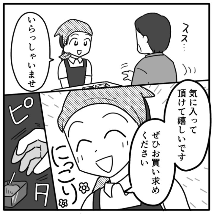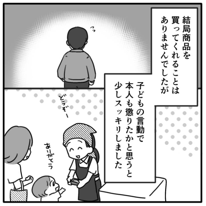 純粋な子供の一言で撃退されたおじさん。結局商品は買わずに逃げていきましたが、すっきりした主人公でした。