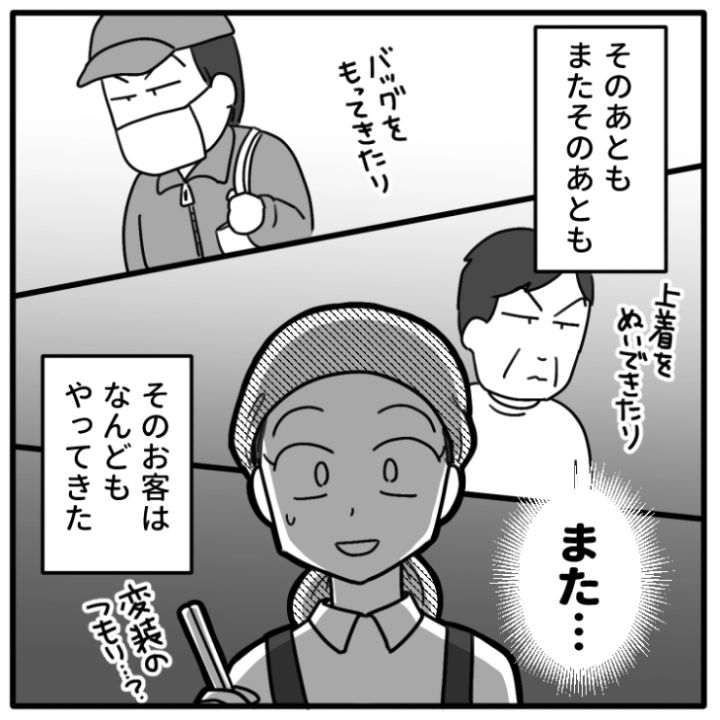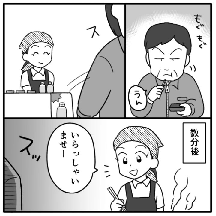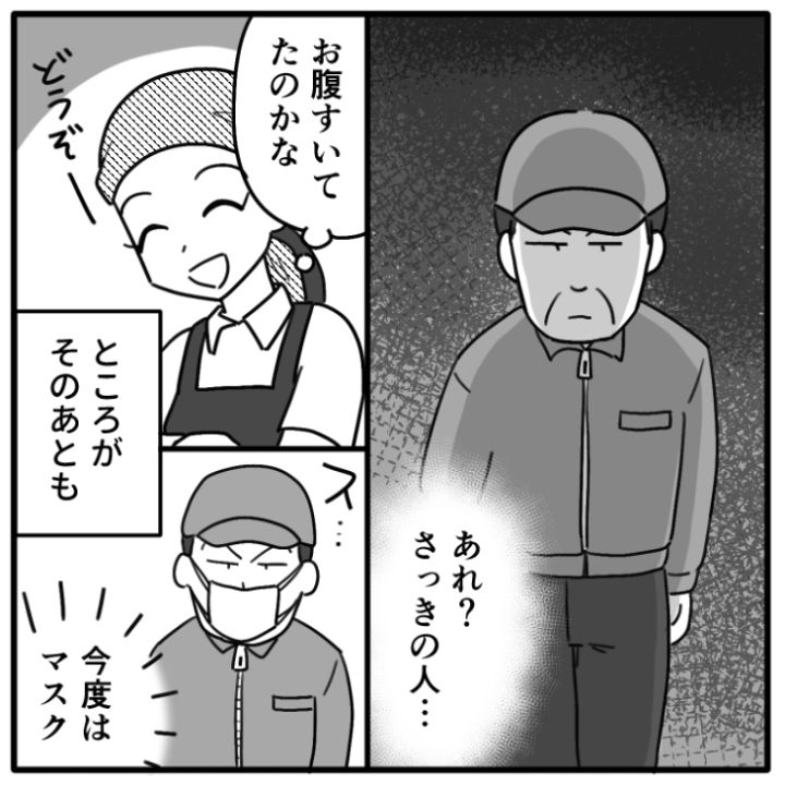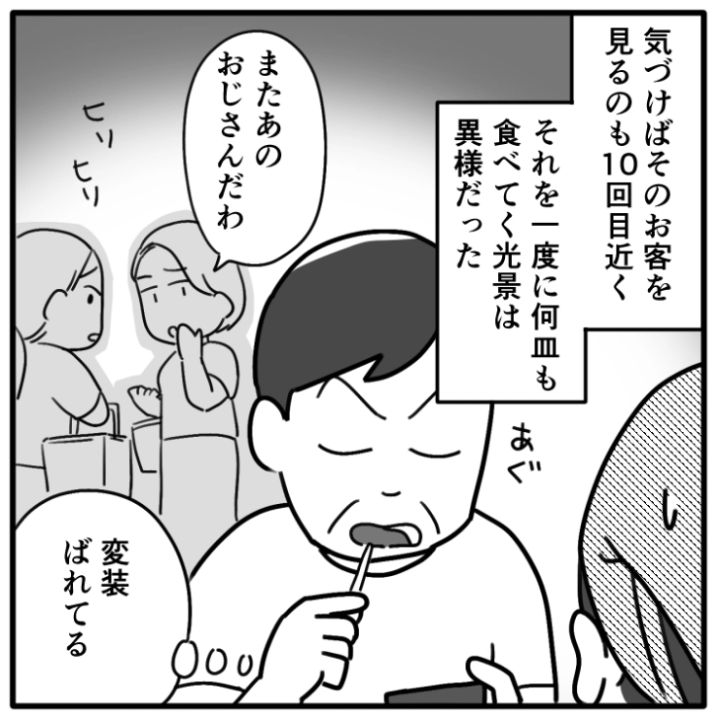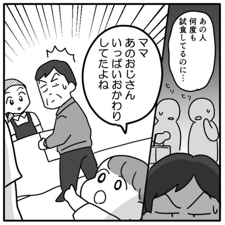 衝撃のエピソードを漫画化!今回はスーパーの試食コーナーに変装して何度もやってくる迷惑おじさんのお話をご紹介します。