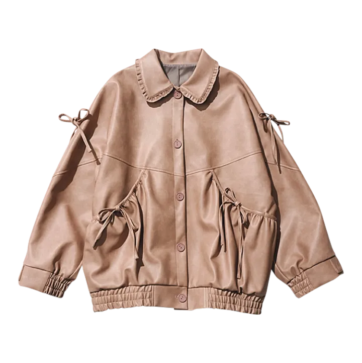 すそのリボンやフリルなどガーリー要素たっぷりな甘レザー。