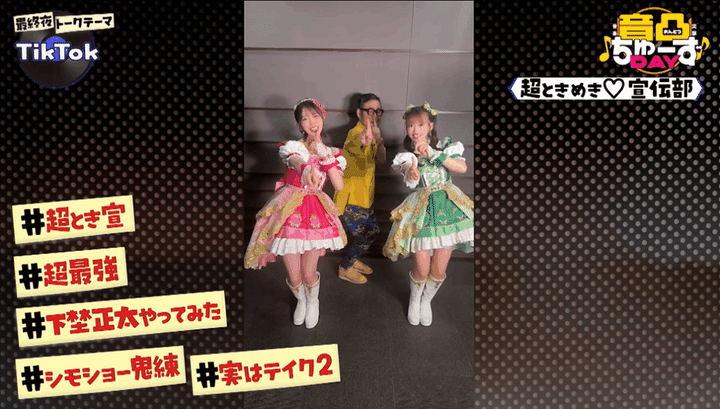 今回、下埜は「おはよう朝日です」出演のためABCテレビのCスタジオにいた超ときめき♡宣伝部の小泉遥香さん&吉川ひよりさんに音凸!