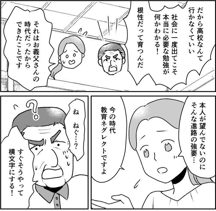 <義父の中卒・根性論!>「今のガキは甘い」孫よ!自分で人生切り開け!⇒夫よ!喋れ【まんが】
