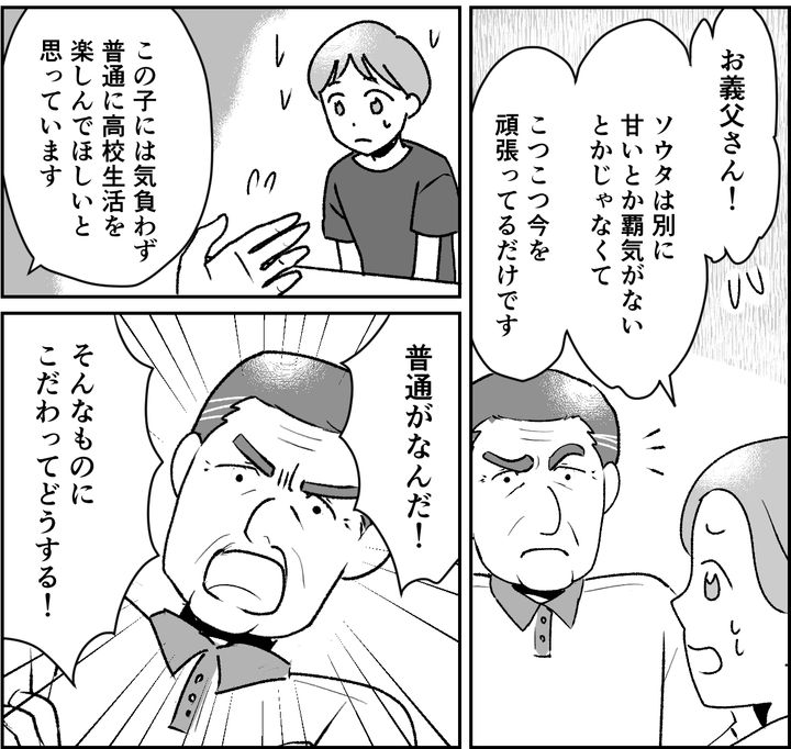 私は義父に「ソウタは別に甘いとか覇気がないとかじゃなくて、こつこつ今を頑張ってるだけです。私はこの子には気負わず普通に高校生活を楽しんでほしいと思っています」と、気持ちを伝えました。でもそれが義父には逆効果だったようで……。