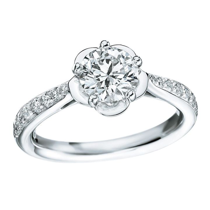 ガブリエル・シャネルが生涯にわたり最も愛し、完璧な花とたたえたカメリアがモチーフ。“カメリア コレクション”[Pt×ダイヤモンド、センター1.01ct]¥6,185,960(シャネル tel.0120-525-519)