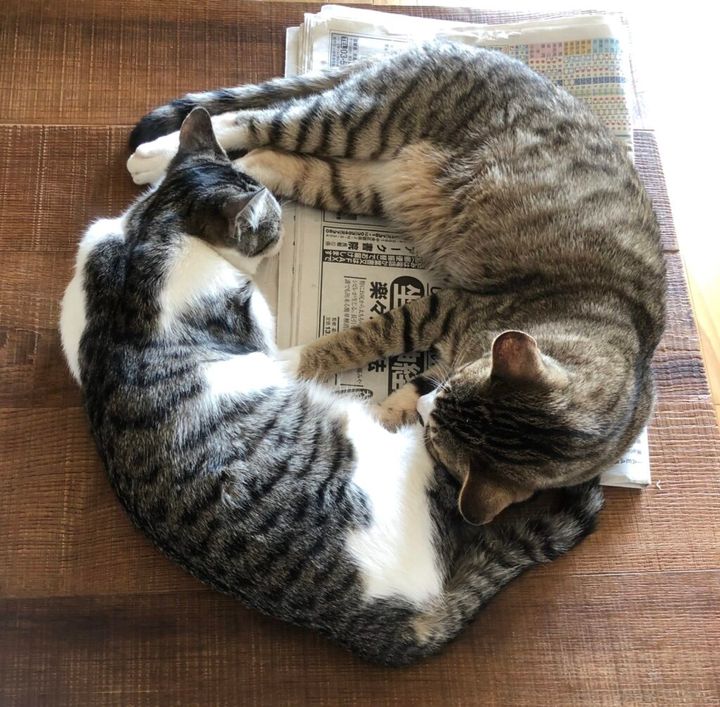 鯖トラ猫のスイと、雉トラ猫のモクは、輪になって踊るように夢の中。